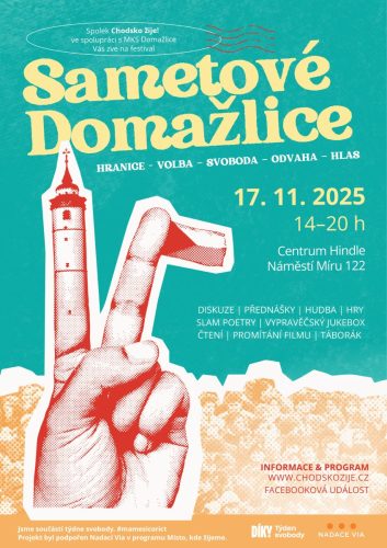 Das vielseitige Programm im Centrum Hindle beginnt um 14:00 Uhr mit einer moderierten Diskussion „November 1989 in den Erinnerungen von Zeitzeugen“ und dem Kindertheater „Wählt die Tiere“. Außerdem freuen Sie sich auf Präsentationen Domažlicer Vereine. Ein besonderes Erlebnis wird „Slam Poetry 1989“ sowie der interaktive „Erzähl-Jukebox“ von Dominika Šindleková sein, bei dem Sie per Abstimmung das nächste Erzählthema wählen können.