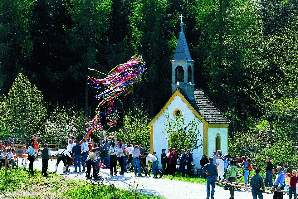 Ve skanzenu Horní Falce v Neusath přivítáme na svátek 1. května společně jaro. Příroda kvete a na loukách se pohybují naše muzejní zvířata a jejich letošní mláďata. Po příjemné procházce areálem se sejdeme ve 13 hodin u muzejního hostince. Od 13 hodin se totiž začne stavět májka. Koňský potah přiveze nejprve ozdobený kmen k místu dění před hostincem. Stavění májky provádějí členové místních spolků z obce Neusath a v muzeu se májka tradičně staví bez použití techniky. Pouze za pomoci mužské síly a dřevěných vzpěr je strom postupně zvedán. „Dechovka z Nabburgu“ bude na podporu chlapců vyhrávat a pozve hosty následně k prvnímu májovému tanci. O občerstvení se obvyklým způsobem postará tým našeho hostince. Také čerstvý muzejní chléb bude o svátku opět v nabídce. Děti pozveme od 12 hodin na akci: Poj´d si hrát! Při této bezplatné nabídce budeme tvořit na tkalcovském rámu z přírodních materiálů jarní motivy. Tato nabídka je již zahrnutá v ceně muzejní vstupenky a trvá do 15 hodin. Jednoduše se zastavte a zapojte!