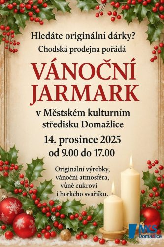 Chodská prodejna vás zve na vánoční jarmark v sále MKS v Domažlicích od 9 do 17 hod. Mezi prodejci najdete i stánek se zbožím Chodsko žije! a Hindle.